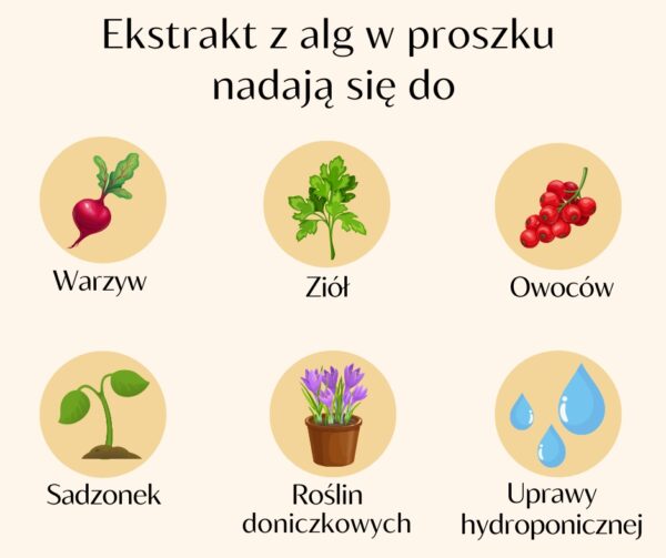 Proszek łatwo rozpuszczalny, zawierający 100% alg z gatunku Ascophyllum nodosum.