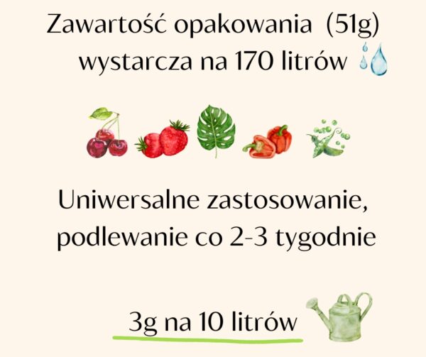 Warzywa: 500 – 700 g / ha, co 2-3 tygodnie.